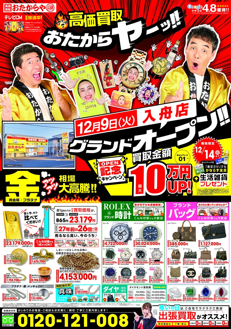 金やダイヤモンドといった宝石・貴金属類のほか、ブランドバックや時計、切手、骨董品など